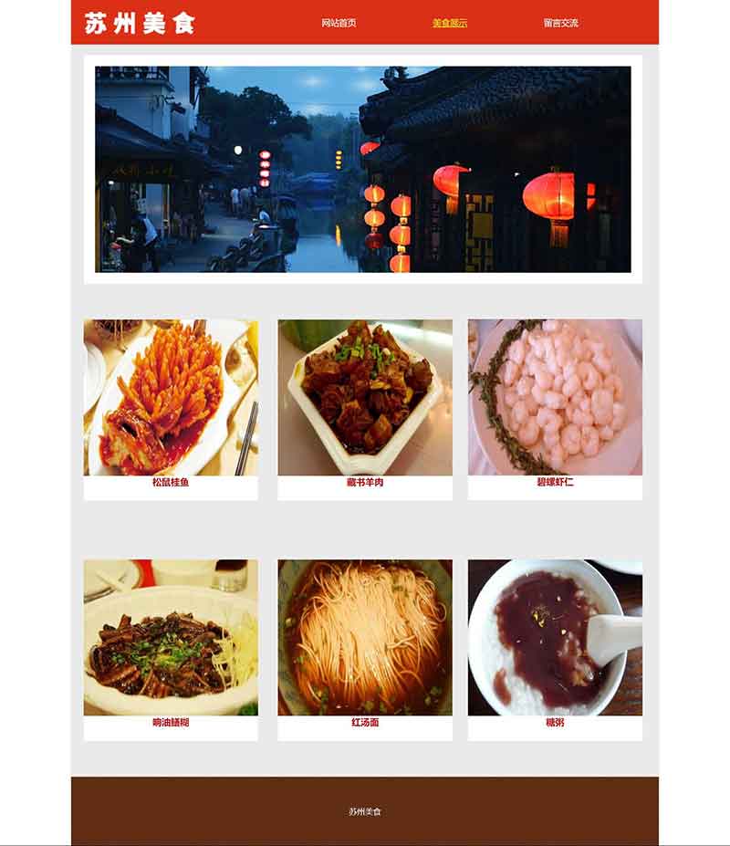 苏州美食网页成品为大学生静态HTML网页课程水平成品,采用Table布局制作,共5个页面。技术知识点应用了:表单。